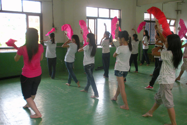 该实践队在附城中学除了开展第一课堂和第二课堂外,还开展了课外活动。队员们和学生们吃完晚饭后,就是他们最快乐的时候了。他们一起打羽毛球、排球、篮球、乒乓球等,其乐融融。有些队员不会打篮球,学生们就像个小老师一样耐心地教队员,还不断地示范动作给队员看。有些学生把刚刚学到的太极拳、手语等教给愿意学习的队员,构成了一幅美丽温馨的师生互学图。有些学生在练习当天学到的舞蹈,健美操等。有些好学的学生还找队员教他们打篮球,他们学得很认真,和老师们讨论每一个招式该怎样打,队员们和学生们打成一片,没有一点老师的架子,就像朋友一样,让学生们更加亲近他们。学生们激情四射,非常活跃,充分展示他们这个年龄特有的风采。