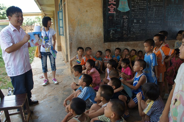 课堂上,服务队还向各班学生派发卫生知识宣传单张,老师认真地向学生讲解宣传单张的内容以及卫生保健的具体做法,图文并茂的方式能让学生更好掌握卫生知识。除此之外,老师还教小学生们唱“卫生歌”,爽朗的歌声传遍整个校园,课堂气氛十分活跃。另外,老师还运用自画的漫画进行教学,一张张贴近生活的图片吸引着小学生们的目光,使他们学得更积极、更认真,能把常洗手、讲卫生等保健知识记得更牢固。一首“刷牙歌”让小学生们清楚知道刷牙的方式和勤刷牙的重要性。最后,各班班主任把眼保健操的做法教给小学生,以提醒他们自觉保护可爱的小眼睛。