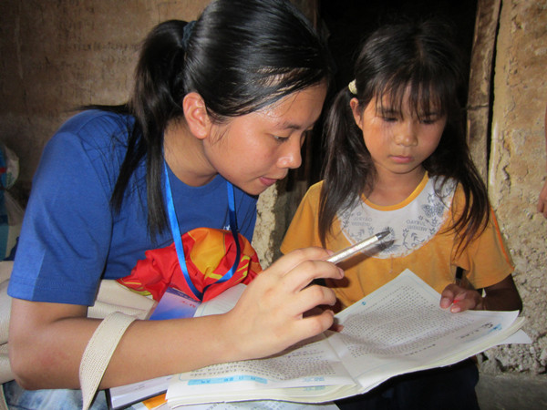 湛师新闻网7月22日讯 为了积极响应国家对留守儿童的关注,体现大学生关注社会、奉献爱心的良好风貌,昨日早上,在来宾良塘乡政委黄委员和何秘书的带领下,“梦之蓝”三下乡实践队来到英村、王瓜村和石仁村走访慰问留守儿童,开展了为留守儿童提供学习辅导、心理帮助、生活关爱的交流活动。