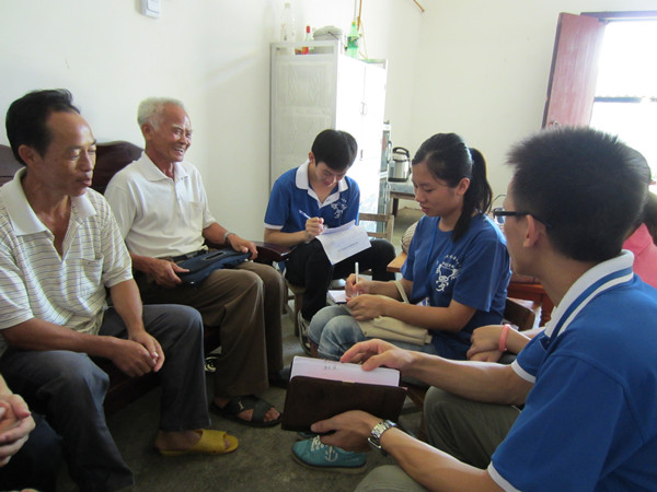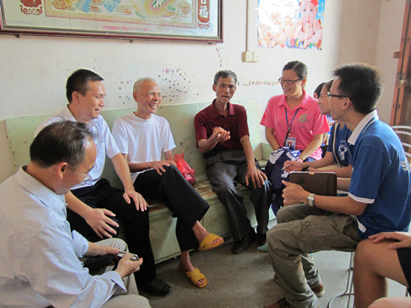 湛师新闻网7月21日讯 昨天早上,在乡政府何秘书的带领下,“梦之蓝”三下乡实践队来到了良塘村委良塘二街,慰问老党员卓英智老先生。走进卓老先生的家,它给队员们的第一感觉就是朴素。当队员们见到这位86岁高龄的老党员时,内心一片激动。在接下来的交谈对话中,队员们对这位老党员更加地敬仰。卓英智老先生于1952年加入了党,当时正值国家进行土地改革,身为民兵队长的他,因工作负责,为人民尽心尽力,很快通过了中共党组织的考察,年仅26岁就成为了一名光荣的共产党员。同时,老先生也为队员们讲述了一些在进行土地改革时所遇到的困难以及在文化大革命中所遭遇的苦难,并感慨在党的带领下才换来今天的幸福生活。看到卓老先生那张饱经沧桑的脸,队员们明白到今日的幸福生活来之不易。最后,队员们给老党员送上了真挚的关怀和慰问品。