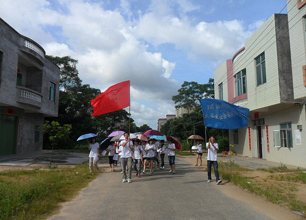 实践队员顶着烈日在街上东奔西走,向村民派发传单,解释“低碳生活”的意义;在街上显眼的位置拉上宣传横幅,以此提醒村民时刻注意节能环保。