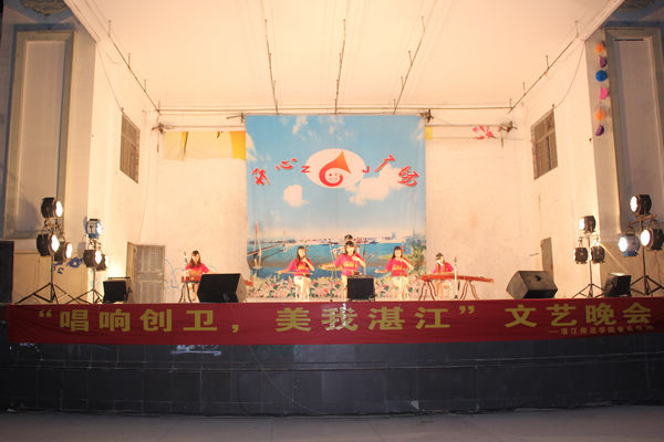 湛江市文化馆党支部书记陈悦、彭广英副馆长,我校团委郭和才书记、李亚九副书记,音乐学院党委刘福瑞书记、孙建华院长、王雄艺副书记,人文学院钟明杰副书记,团委莫琼玉老师以及创卫团队指导老师葛佳才、陈志强、李均凤、詹绍姬等老师参加了文艺晚会。