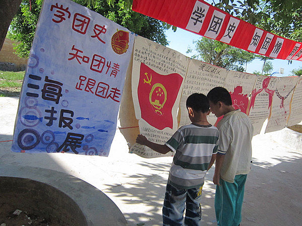 “向日葵”实践队紧扣中国共青团建团90周年的主题,运用海报、图片、讲解等丰富多彩的宣传方式,向学生讲解了有关中国共青团的知识。鲜活生动、通俗易懂的讲解,种类繁多、图文并茂的海报,不但让小学生知团、感团,进一步靠近中国共青团,更让他们对团产生崇敬之感,鼓舞他们早日加入中国共青团。