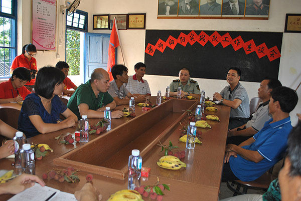 下午,向阳”实践队队长首先做作了下乡六天来的工作汇报,简单介绍后期的活动安排。接着,康港小学校长李清,书记王兆金,边防派出所所长叶耀辉分别作了重要讲话,从教学、工作、生活等方面对“向阳”社会实践队开展的“三下乡”活动给予高度赞赏。一同出席本次会议的镇教育部门负责人邝泽莹也对该队的工作给予充分肯定,希望队员在为学生架起传输知识桥梁的同时能够在这次活动中有所收获。体科院郑副书记代表我校对北和镇村民表示衷心的感谢,要求实践队需不拘小节,并对提出有建设性的意见,预祝“三下乡”活动取得圆满成功。最后,该队队员代表浅谈了自己在活动中的深切感受,保证队员们会尽最大的努力做学生最喜爱的老师、群众最满意的大学生。