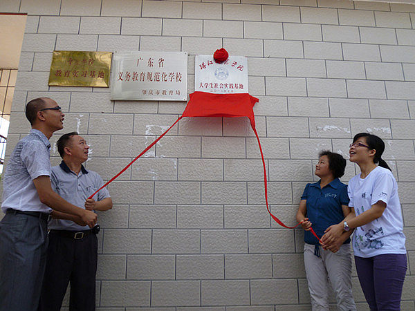 活动伊始,是实践基地的揭牌仪式。接着,林颂弥书记发表讲话。她代表官圩中学对“曦望”实践队的到来表示亲切的问候和热烈的欢迎,并提了几点建议:一要把安全放在首要位置;二是把社会当做大课堂,虚心向群众学习;三是要发扬奉献、爱心的精神。她希望借“三下乡”实践活动开展的契机,营造官圩镇形成浓厚的教育氛围,学生更努力学习,学有所成。