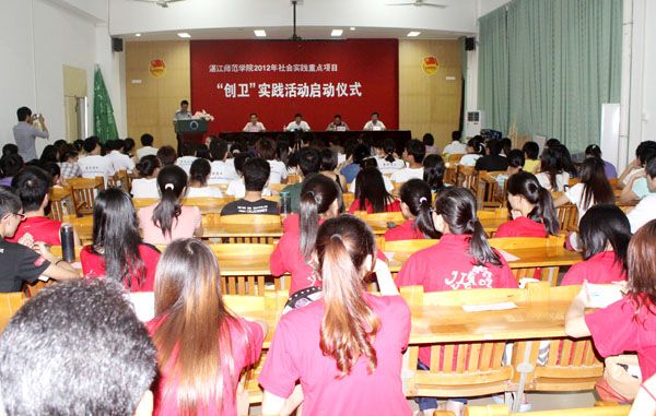 校团委郭和才书记作了动员讲话。郭书记在讲话中指出,创建国家卫生城市,既需要政府的领导,部门的配合,更需要广大市民的热情参与。为此,我校精心筹划部署了今年暑期社会实践的重点项目——湛江师范学院暑期创卫实践活动,活动由11支实践队伍组成,参与实践活动的师生人数约500人,活动规模盛大。