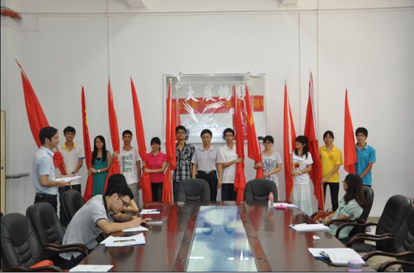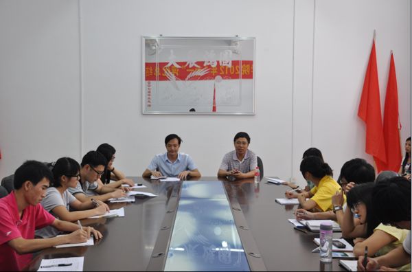 湛师新闻网7月5日讯 今天上午,信息学院在雷阳楼B栋101会议室举行2012年“三下乡”社会实践出征仪式。信息学院党委林汉书记、辅导员谢统年老师、张立敏老师、彭东丽老师、陈卉卉老师、“三下乡”队员代表共100多人参加了出征仪式。仪式由辅导员谢统年老师主持。