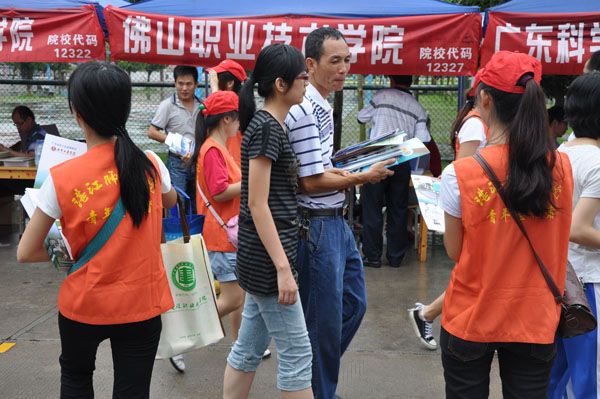 志愿者们主要负责接待来前咨询的家长和向高考生派发传单、发放礼品,并且帮助高校向他们解答关于招生问题的疑问。通过志愿者和各高校负责人的共同努力,学生和家长对各高校招生计划和如何让填报志愿的问题有了深刻的了解。咨询现场一片热闹,很多高校咨询台前都挤满了学生,高校代表拿出了近3年来在广东的招生录取情况表,包括学校录取的全省及各专业的最高分、最低分和平均分,这些资料为广大考生填报志愿起到重要的参考作用。虽然是雨天,但是有志愿者的热情奉献和努力付出,保证了本次咨询会有条不紊的进行。