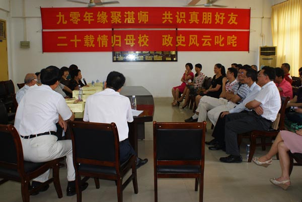 6月22日,经过精心的筹备,原政史系92届政史一班的四十多名校友欢聚湛师,举行毕业二十周年聚会。法政学院冯亮如书记、韩明德院长、全柱副书记以及当年的班主任刘家英老师、任课老师肖佩钦、邓荣诗、刘佐泉、邵小荃等老师也参加了本次聚会。