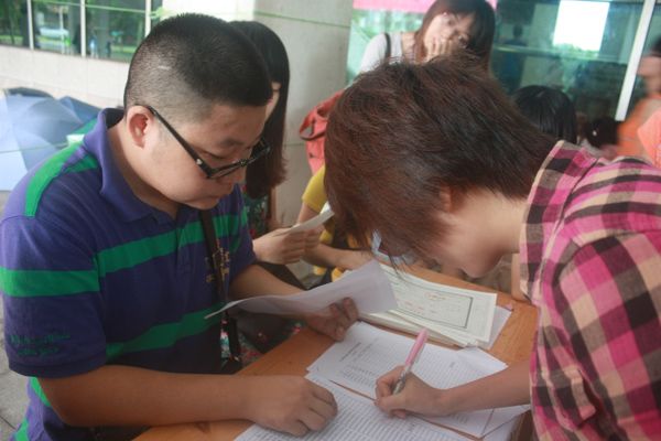 湛师新闻网6月21日讯 为了给毕业生提供一个便利的领取毕业证件的服务,今天上午,人文学院在体育馆门前举行了2012届毕业生毕业证件发放仪式,该院党委谢应明书记、冯基聪副书记、辅导员陈明辉老师、黄河老师、谢明亮老师、张家波老师到现场指导工作的开展。