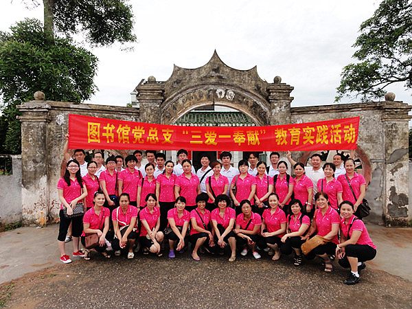 湛师新闻网6月18日讯 6月13日,图书馆党总支为积极响应学校《关于开展“三爱一奉献”创先争优主题教育实践活动的通知》精神,在党总支陈福书记带领下,开展了以“三爱一奉献”为主题教育的党员日活动——参观中共广东早期党员黄学增烈士故居,学习革命先烈无私奉献精神,坚定共产主义信仰和全心全意为人民服务的理念。