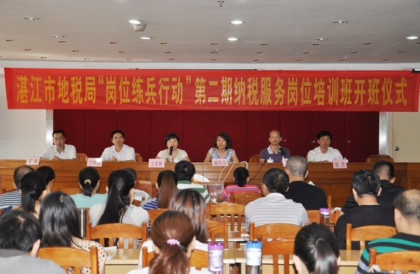 湛江市地税局人教科梁宇卫科长讲到,本期纳税服务岗位培训班对推动湛江市地税系统纳税服务专业人才培养和税收的发展都具有重要的意义。在肯定地税局近年来在各方面取得进步和在各界赢得赞誉的同时,也指出了地税局目前存在的工作人员改革观点不强、因循守旧、综合素质参差不齐、事业心责任感不强等不足之处。为了加强教育培养工作,实现培养一批高层次专业化工作人员的工作要求和目标,她提出了两点要求:第一,端正态度,充分认识开展岗位培训班的重要性和必要性;第二,严格要求,不断提高业务水平,争取在岗位培训中取得优异成绩。她还表明湛江正处于发展的新时期,要抓住机遇,培养更多高素质的专业化人才,提高人才的综合能力,打造一支高素质的人才队伍。为了更好开展岗位培训活动,确保培训有成效,她还希望各学员在培训过程中要认真学习,持之以恒,服从安排。梁宇卫科长还讲到,我市地税工作正处于科学发展的关键时期,这对地税局的综合素质提出了更高的要求。因此,要以本次岗位练兵行动为契机,从全局的战略角度出发,以严肃的态度来对待本次培训,以严谨的学风参与本次培训,以严格的纪律来保证这次培训,以优异的成绩通过本次培训。最后,她对我校能提供良好的学习环境表示衷心的感谢,并希望双方能建立更好的合作关系,共同为湛江的发展做出贡献。