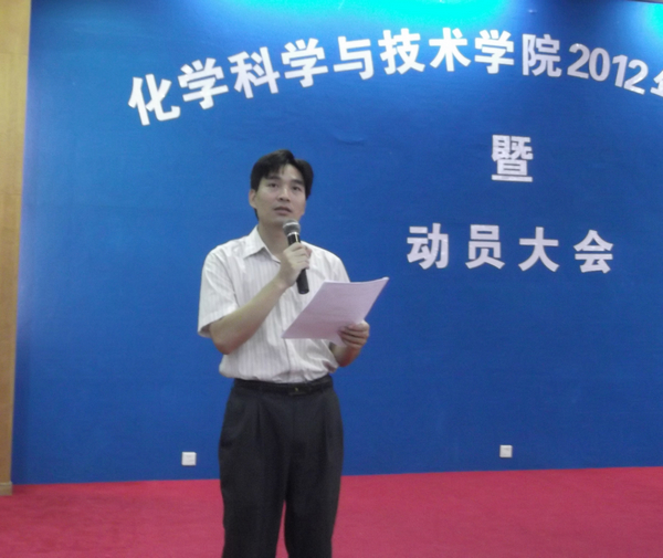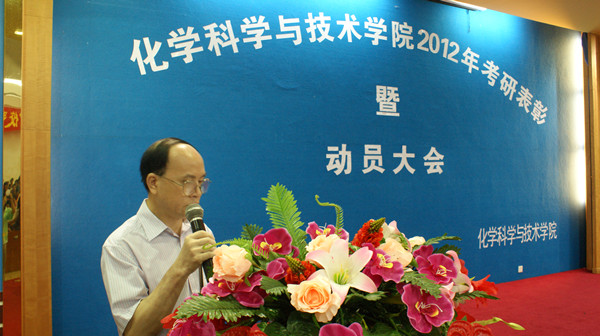 湛师新闻网6月18日讯 昨晚,化学院于弘雷楼311室举行2012年考研表彰暨动员会议。化学院院长莫春生教授、副院长石晓波教授,化学系系主任沈戮,冯宗财教授,朱国贤副教授,夏加亮老师,辅导员冯凌凌老师、万国权老师、章晶晶老师、苏文义老师以及各年级学生出席了本次会议。会议由钟明杰副书记主持。