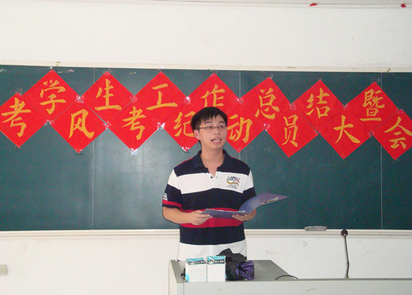 最后,唐书记从考前准备、考场注意事项、作弊处理相关规定等三个方面做了考风考纪的动员。他表示,临近期末,同学们要认真复习,并端正考风考纪,以诚信的态度迎接本学期期末的考试,力争做到考风优良,做到“零违纪,零作弊”。他强调学生党员和学生干部要起好带头作用,传达会议精神,引导同学们严格遵守考场纪律。