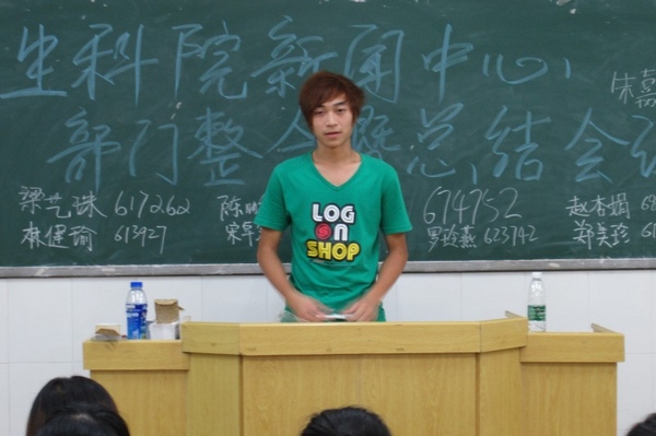 紧接着,副编叶杰锋同学就一年来新闻中心的成长情况做总结,对中心的进步表示欣慰,同时也指出了不少不足之处,并有针对性地对各个部门提出了一些有建设性的建议。