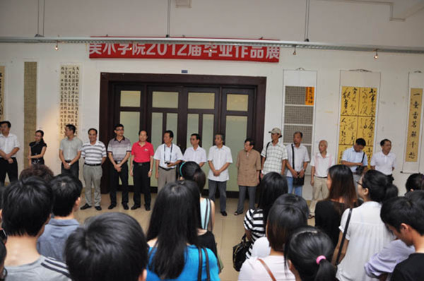 最后,在美术学院党委李爱群书记致辞中,美术学院2012届毕业作品展拉开帷幕。据悉,本次展览涵盖了书法、油画、国画、版画、设计等多方位元素,精彩作品,尽收眼底,令每一位参观者赞叹不已。