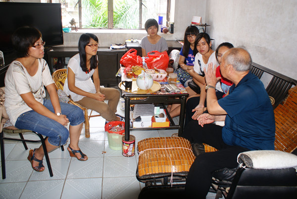 湛师新闻网6月15日讯 以“服务退休教师员工,传递校园温暖”的宗旨,以社团活动为依托,以积极走访为主要形式,以促进党建和社团建设为主要目的,法政学院积极开展“三爱一奉献”主题教育实践活动,增进了学院与退休教工的感情交流。6月13日下午,法政学院辅导员陈明娟老师带领社会工作协会的入党积极分子去探望退休教师邓荣诗老师。