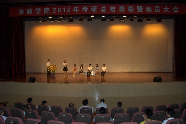 湛师新闻网6月13日讯 昨晚,法政学院2012年考研总结表彰暨动员大会在音乐厅隆重召开。法政学院领导班子成员、各系主任、支部书记以及全体班主任老师、学生代表参加了会议。