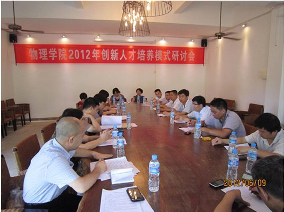 湛师新闻网6月11日讯 6月7~8日,物理学院召开了“2012年创新人才培养模式研讨会”,我校邵乐喜副院长、物理学院教学指导委员会成员以及部分专业教师代表参加了会议。会议由物理学院分管教学副院长李固强教授主持。