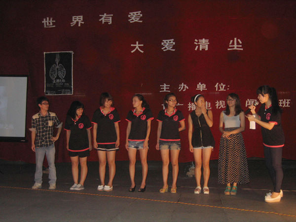 湛师新闻网6月11日讯 昨晚,人文学院11广电新闻2班在体育馆前举行了以“世界有爱,大爱清尘”为主题的班活动。该项活动以公益宣传晚会的形式展开,目的是让更多人了解“大爱清尘”这个社会公益组织,关爱社会上尘肺病人们。11新闻2班全体同学出席了本次班活动。