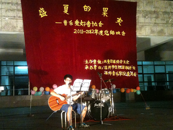 湛师新闻网6月10日讯 昨晚,由校团委主办,校学生会和音乐学院团委共同承办的音乐爱好者协会2011-2012年度总结晚会在体育馆前举行。校社联干部陈永慧,音乐学院团委副秘书长郑天宇和音乐爱好者协会前任会长陈珊珊受邀出席了本次晚会。