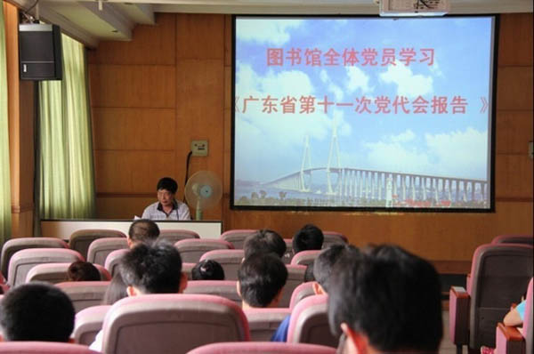 湛师新闻网6月7日讯 昨日下午,图书馆组织全体党员学习了广东省第十一次党代表大会的精神,图书馆陈福书记主持了会议,并向图书馆全体党员传达了相关文件和讲话的精神。