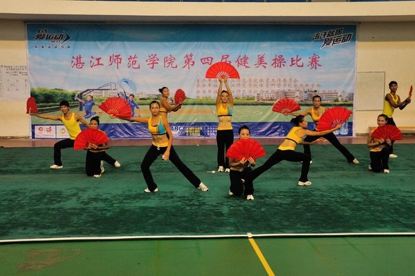 为了丰富校园文化生活,增强学生体质,推动我校健美操运动的发展,提高我校学生健美操运动技术水平,校体育工作委员会决定举办第四届健美操大赛。本次大赛分专业组和普通组,一共有十六支代表队。