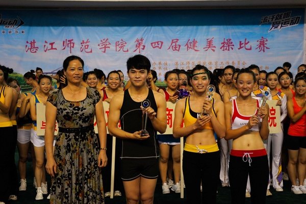 在比赛现场,各个代表队的队员们身穿五彩缤纷的健美服,在一首首动人心魄的歌曲中跳出了青春的激情与活力,赢得了观众们热烈的掌声。经过激烈的角逐,裁判长安剑群老师宣布结果。其中,物理院、商学院、数科院、外语院获得了普通组优秀奖,体科院11代表B队和10代表队荣获专业组优秀奖。荣获普通组最佳表演奖的队伍是信息院,专业组最佳表演奖由体科院09代表队获得;获普通组最佳艺术奖的队伍是生科院,专业组最佳艺术奖由体科院10代表队获得;获普通组优秀组织奖的队伍是教科院,专业组优秀组织奖由体科院11代表A队获得;获普通组进步优秀奖的队伍是教科院,专业组优秀组织奖由体科院11代表B队获得。荣获普通组前六名的队伍是信息院、生科院、音乐学院、人文院、法政院和教科院,获专业组的前三名的是体科院09代表A队、09代表B队和11代表A队。