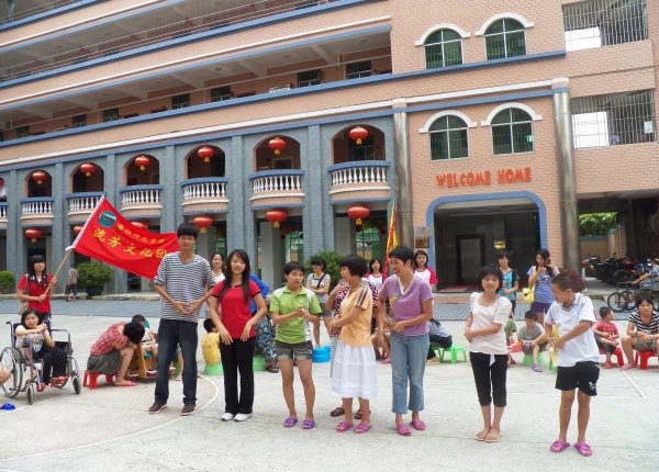 上午,流芳文化团郑光华指导老师与福利院院长进行沟通后,志愿者便开始忙碌起来,为福利院清理和与老人小孩交谈。