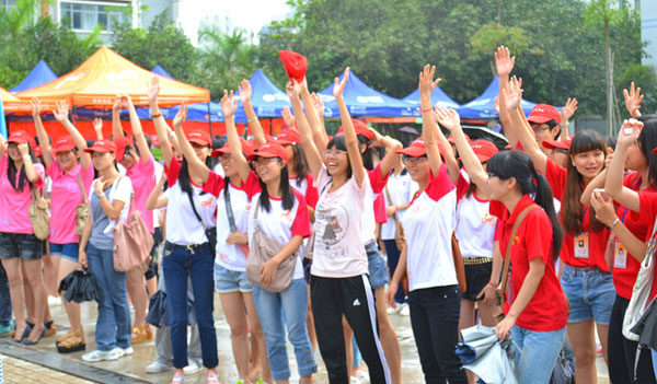 在创卫知识竞赛区,同学们很快排起了长龙,竞相一试才学。在“90年青春路·90后创卫行”有奖游戏中,大学生们齐玩真人版飞行棋。游戏在地板上刻画了五十多个格子,每一格记载一个共青团90年历史中的重大事件。参与游戏的同学统一在“1922年,团一大在广州召开”这一格起步,分别抛骰子决定前进或后退的格数,若能正确回答创卫问题则前进相应格数,否则要倒退相应格数,最快“走完”建团90年历史的同学获胜。轻松活跃的游戏吸引了同学们的积极参与。游戏的命名也别有深意,寄望90后的同学们重温团史,以创卫的实际行动作为90年精神最好的纪念和传承,同时也充满自信地承诺“我们能行!”。