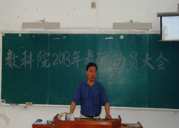 湛师新闻网5月31日讯 为了进一步提高学生的考研积极性,营造良好学风,昨天,数科院在榕燕楼105室举行考研动员大会。数科院李晓培院长,数学系主任刘小松教授、计算科学系主任吴勇旗博士,辅导员全光华老师、杨洁老师以及准备2013年考研的学生出席了大会。