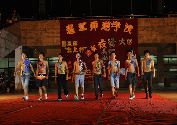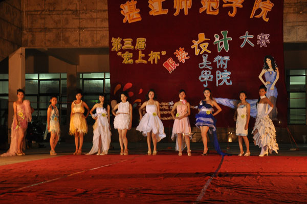 湛师新闻网5月28日讯 为进一步展现当代大学生的设计理念,引入服装潮流,昨晚,由美术学院团委主办的美院第三届“宏上杯”服装设计展示比赛在体育馆前拉开了帷幕。赞助商代表湛江宏上服装有限公司总经理陈韶滨、美术学院设计系教师王嫚、李强、怀康、刘欢,辅导员黄钰晶等出席本次活动。