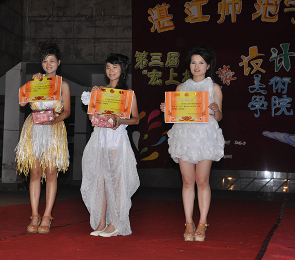 经过激烈角逐,灵感来源于折纸的作品《Snow Angel》获特等奖,环保作品《Purple~line》等获一等奖,作品《蚕》等获二等奖。作品《 追求 》等获三等奖,此外还评选出最佳人气奖、最佳模特奖等奖项。最后,赞助商代表陈韶滨总经理发言。她充分肯定此次活动举办的成功以及意义、赞扬设计者们的精心构思以及演出者的精彩表演,她提到,作为一名湛师校友参加此次活动,她感到非常荣幸并衷心祝愿母校的明天越来越好。
