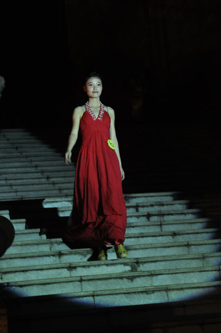 首先,是极具特色的服装展示表演。静谧夜空下,伴随悠扬悦耳的音乐,参赛选手宛如神秘高贵的仙子在翩翩起舞,为大家打造一篇篇华丽的篇章。第一篇:传统服饰篇。极具中国特色的四组服装展现在大家面前,《最炫民族风》等作品引领我们重温传统服装的魅力。第二篇:礼服篇。华丽高贵的礼服交汇碰撞,其中,《金粉世家》全身以金色打底裙为主,附加金色棉纱,在夜灯下闪闪发光,华丽展示让在场的观众大饱眼福。第三篇:时装篇。时装组的设计者以灵巧的双手诠释时尚内涵,引领时尚前沿,秀我时尚风采。《蚕》,运用麻布面料营造出一种淳朴自然的氛围。第四篇:环保设计篇。设计者们心灵手巧,构思精巧,将身边废旧的东西变为宝,制成一件件别出心裁的服装,如《pipe dream》的三件套采用生活中常见的废弃物,如废纸、旧蚊帐,旧包装带、旧水果包装袋串联而成,做成了三件极具艺术性的服装。比赛过程中还有美院特色品牌活动人体彩绘以及舞蹈表演等。