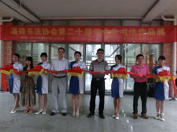 湛师新闻网5月27日讯 昨天,我校书法协会第二十届毕业生书法作品展在学校图书馆二楼举行。校学生处处长、湛江市书法家协会秘书长黄达海老师,党委宣传部关天冲科长以及各兄弟院校的书协代表、我校书协会员参加了开幕式。本次展览展出我校书法协会应届毕业生黄安桂、莫晓兰、麦丽君、张德华、唐杰作、罗燕红、沈素云、陈志标、刘业坤、姜琳等10位毕业生的作品。