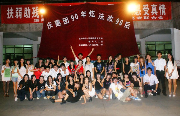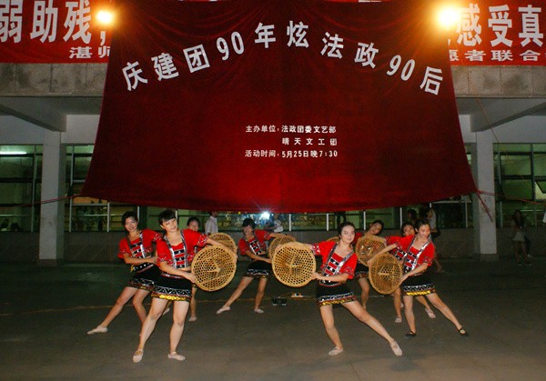 湛师新闻网5月27日讯 为庆祝建团90周年,丰富在校大学生的课余生活。5月25日晚,法政学院学生会文艺部在体育馆前举行了主题为“庆建团90年,炫法政90后”第九届晴天文工团文艺汇演。该院辅导员陈明娟老师、团委主要干部及各二级学院代表参加了本次活动。