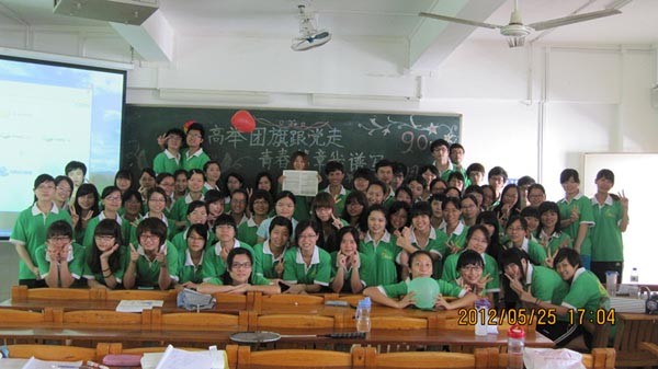 为了庆祝建团90周年,教科院10教本一团支部在燕雷楼804室开展了以“高举团旗跟党走,青春篇章我谱写”为主题的团日活动,该支部全体团员出席了活动。团日活动在全体团员合唱团歌和讴歌共青团的光辉业绩中拉开序幕。团员们观看了庆祝建团九十周年的宣传片和进行团史知识竞赛问答,宣传片讲述了团一大在广州东园召开的历程,团员们都被这曲折却又伟大的历程深深吸引着,积极踊跃地抢答团史知识问题。紧接着,支部团员们进行“心存感恩,放飞祝福”演讲,一件件感人的事件感动了全体团员,响起阵阵掌声。最后,由11名团员合作演唱歌曲“和你一样”和“隐形的翅膀”。本次团日活动加大了对团的宣传,增加了团员们对团史党情的了解,加强了团员们的光荣感。