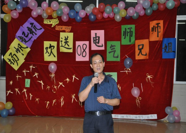 湛师新闻网5月25日讯 23日晚,为了欢送信息学院电气工程及其自动化2012届毕业生,由10电气主办的欢送晚会于5月在鸿园二楼举行,出席本次晚会的嘉宾有信息学院副院长张炜、申立老师、张馨方老师以及08、09、10、11级电气工程及其自动化专业的学生。