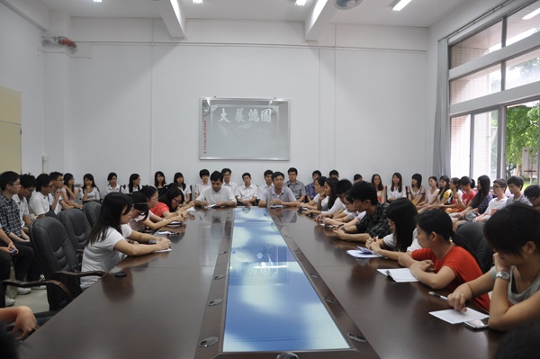 湛师新闻网5月23日讯 为了更好地发挥党员的先锋模范作用,切实地做好毕业生的离校工作,昨天下午,信息学院在雷阳楼B栋101室召开了2012届毕业生党员座谈会。信息学院党委林汉书记、林荣新副书记及辅导员岳喜凤老师出席了本次会议,并与广大毕业生党员代表进行了亲切交流。此次座谈会由林荣新副书记主持。