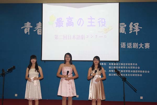 湛师新闻网5月20日讯 昨天下午,由日本文化研究协会组织的第二届“最高の主役”日语话剧大赛决赛在弘雷楼311室如期举行。外国语学院党委冯彩莲副书记以及辅导员罗成燕老师出席了本次比赛。日语系胡英姿老师以及日语系三年级两名同学担任本次比赛评委,