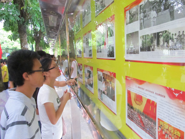 本次参观学习活动以建团90周年为主题,参观的主要内容是以看图片、读文字的形式回顾建团90周年的历史,在参观学习的过程中,同学们的学习热情高涨,一边认真学习建团历史,一边讨论团的成长过程。布告栏上,那一张张图景似乎定住了时间的年轮,行行文字在深情地诉说那90年的风风雨雨,使同学们深深沉溺于共青团璀璨文化内涵中而流连忘返。