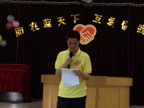 接着,中山街道办的残疾人代表发言。他首先感谢了社会对于残疾人的关爱,并向大家讲诉了他通过自学使英语水平达到初中水平的经历,以此鼓励残疾人们要自尊、自爱、自强,积极向上的面对生活。他表示,每个人都应该怀有感恩的心,懂得生命的真谛,并学会珍惜生命。