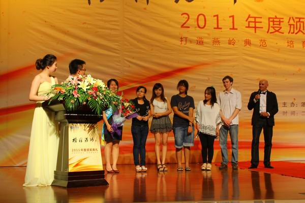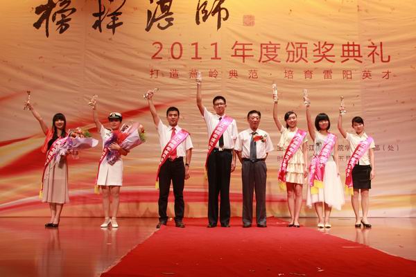接下来正式进入2011年度“榜样湛师”各奖项的颁发。在以吸引眼球、引发轰动的视频形式展现各获奖同学的先进事迹与风采后,校领导李江凌和冯宗财、曾富华、唐有伯、陈俊英、葛佳才等几位名师名教授分别为各奖项获奖同学致颁奖辞并颁发了奖杯。名师与名生同台亮相,相互辉映,充分体现名师与名生的互动传承。