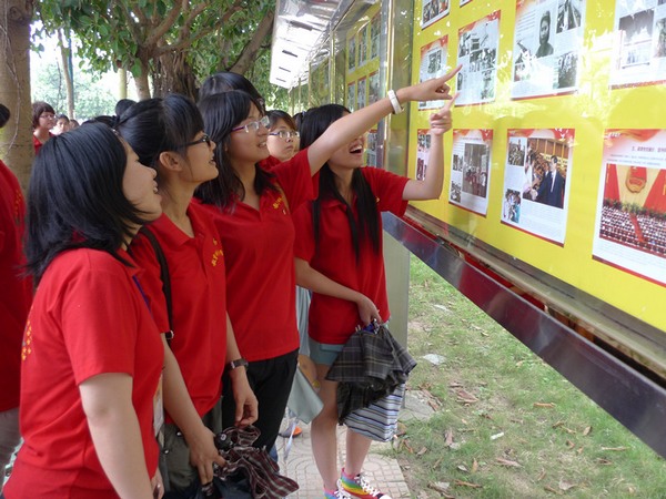 湛师新闻网5月17日讯 昨天中午,为了加深院级干部对团的认识及了解,弘扬团文化,教科院组织全体院级干部参观位于音乐厅侧门旁的校道的共青团90周年成果展,辅导员邓倩文老师一同参观。