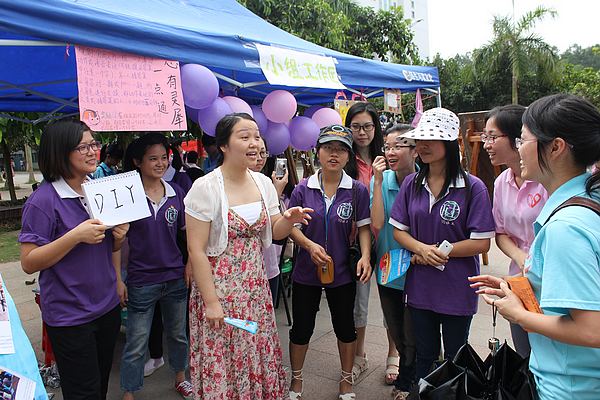 紧接着,社工同学引导领导老师们到第二个活动区“社工实验室”了解活动开展情况,并参与其中。在这个“社工实验室”里,现场心理咨询、环保作词比拼和夏日运动保健等有奖活动使学生们更深入地了解社会工作。
