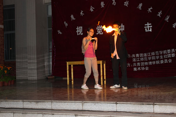 湛师新闻网5月14日讯 昨晚,我校魔术协会在雷阳楼前举行了以“视觉冲击”为主题的首届魔术会暨高校魔术交流会。参加本次魔术会还有来自广东金融学院、广东石油化工学院和广东海洋大学寸金学院等高校的魔术爱好者。校社团联合会干部出席了本次活动。