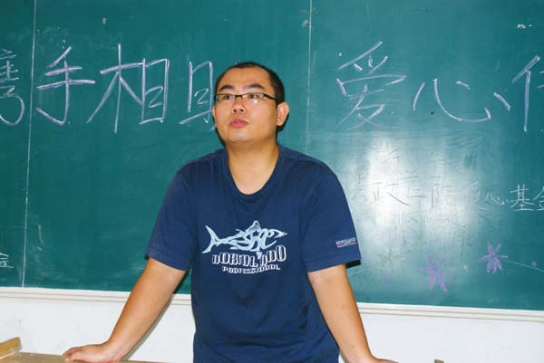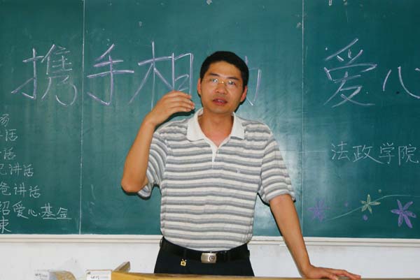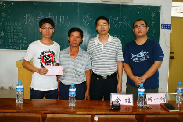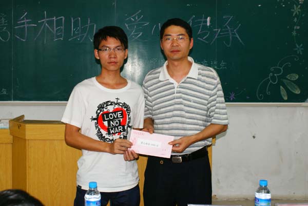 最后,戴荣智师兄及其父亲发表了感谢宣言,对法政学院的领导老师同学们对他们的帮助表示了衷心的谢意。接着,全柱副书记为戴荣智颁发5000元的爱心基金。
