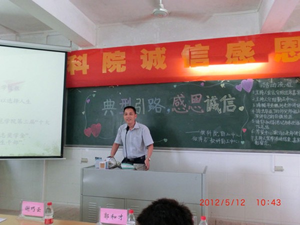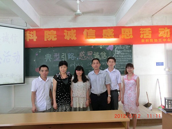 湛师新闻网5月13日讯 为了充分发挥自强之星的模范作用,让更多的贫困生能正确看待贫困这一现象并树立正确的人生观、价值观、世界观,活出属于自己的“精彩”,昨日上午,教科院勤工中心在燕雷楼411举行了“典型引路,感恩诚信”的诚信教育活动。出席本次活动的校学贷中心谢巧云主任、教科院党委郭和才副书记、辅导员魏珂老师、该院三位校友、全体勤工干部和贫困生。
