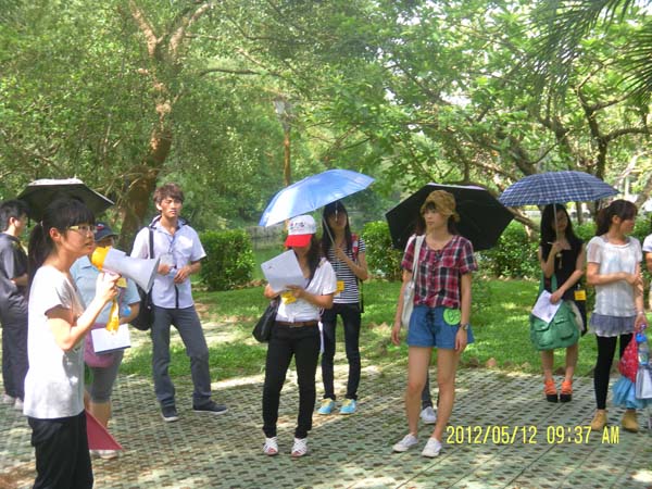 湛师新闻网5月13日讯 为了让选手们更加亲身体会当一名导游的乐趣,提高实践能力,展现导游的风采,并更好地发现自己的兴趣和发挥自己的潜能,昨日上午,旅游公关协会举行了模拟导游比赛的晋级赛——带团实操,为选手们提供了三条户外带团实操路线:校园A线、寸金公园B线和C线,并在活动开始之前由选手随机抽签决定了自己的景点讲解区。