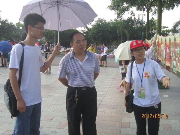 炎炎烈日丝毫不减同学们对传播红土文化的热情,一张张精美的图片,一段段精彩的解说吸引了众多学子们前来参观。活动中也设置了有奖问答以及赠送红土文化书签等环节,极大的调动了同学们参加活动的热情。在活动中,申友良副教授仔细的听了每位队员对图片的讲解,对队员的出色表现以及活动的开展予以肯定,并对活动中的不足给出建议。